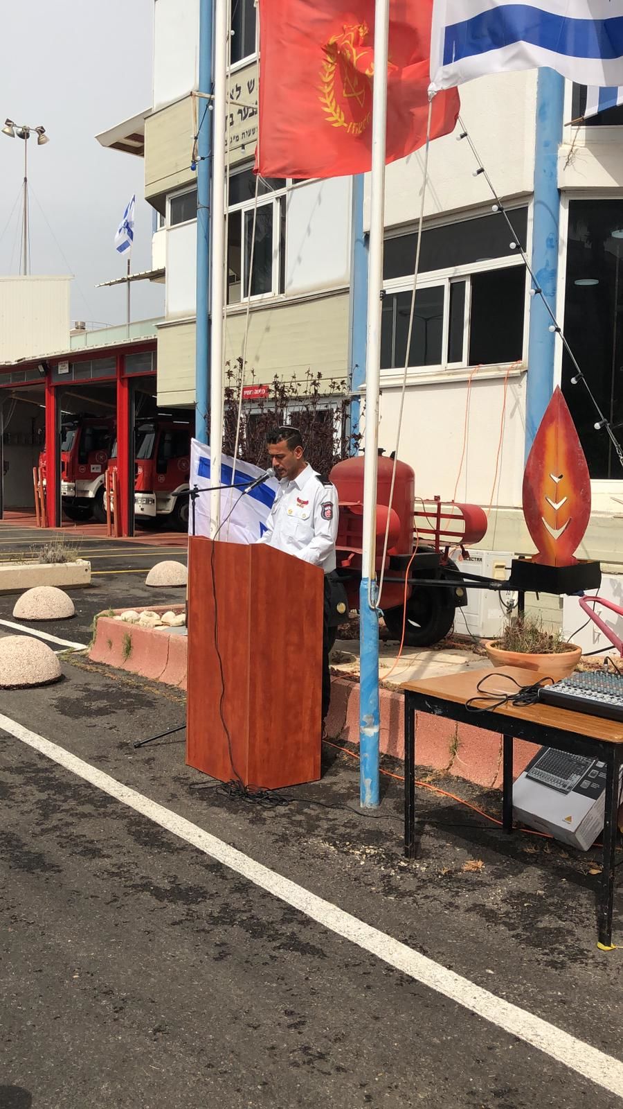 רס"ר יהונתן ענקי פתח בתפילת יזכור לחללי השואה ופקודת נציב כבאות והצלה לישראל ליום השואה והגבורה.