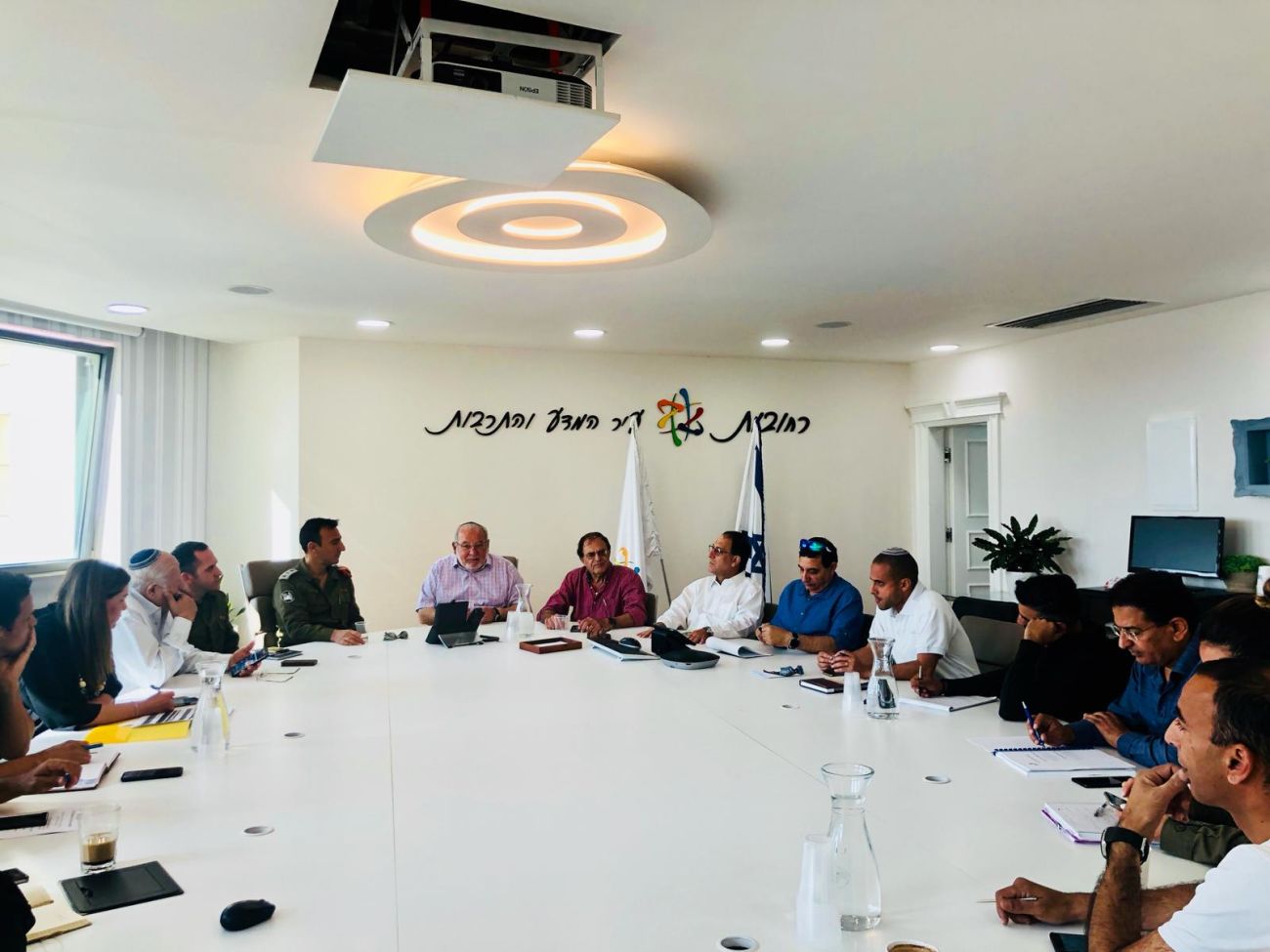 בישיבה בראשות ראש העיר נכחו גם ממלאי מקומו בנצי שרעבי וזהר בלום, סגנו עו"ד יניב מרקוביץ', מנכ״ל העירייה דורון מילברג וגורמי הביטחון, החירום והחינוך בעיר- אליצור זרחי, אפרת צוקרמן וערן גיאת מנהל השיטור העירוני, מ"מ מנכ״ל החברה העירונית, איציק עובדיה ומ"מ מנכ״ל רשת חוויות, צביקה מדהלה, וכן מ"מ מפקד יקל"ר סרן רומן פובולוצקי.
