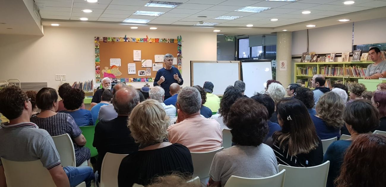 אפרים סידון ודני קרמן נפגשו עם מתנדבים וקוראים עם צרכים מיוחדים בספרייה המרכזית של רשת חוויות רחובות