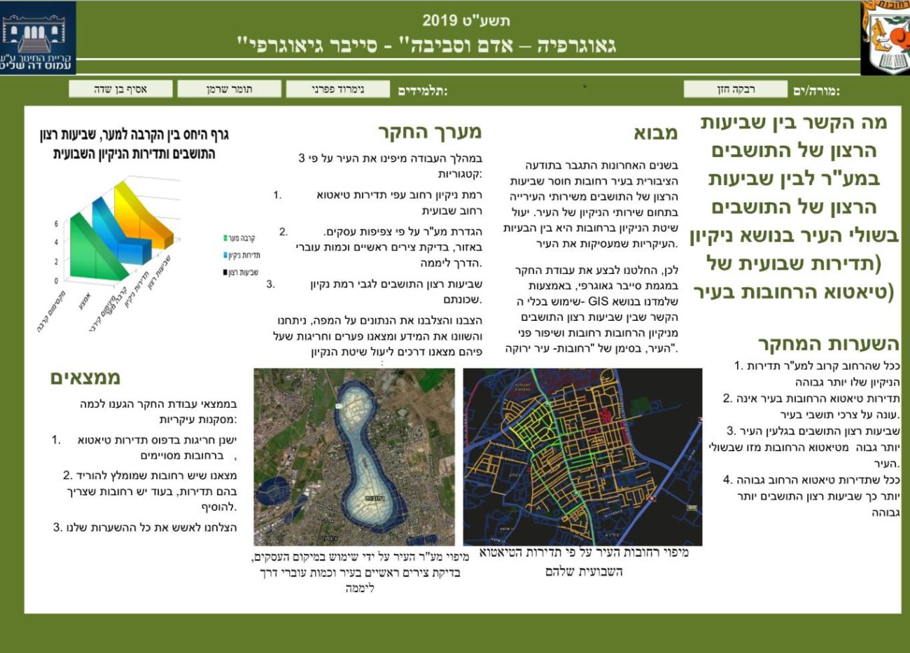 נושא הניקיון ברחוב הוא נושא שמטריד רבות את תושבי העיר ולכן התלמידים החליטו כי הם מבקשים לחקור את הנושא ואיך ניתן יהיה לייעל אותו. באמצעות שימוש בכלי ה - GIS