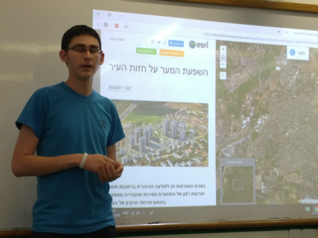התלמידים למדו את תדירויות השבועיות לטאטוא הרחובות בעיר על פי מידע שקיבלו באגף שפ"ע ומיפו אותו ועזרה מאגף GIS העירונית (מערכת ה - GIS לוקחת רשימות, טבלאות ונתונים רבים, שלחוד לא אומרים דבר, ושמה אותם בייחד על מפת מידע על בצורה של שכבות מידע, או "ישויות". אותה מפת מידע מציגה למתעסקים בתחום את כל המידע בצורה נוחה וויזואלית שמאפשרת לאותם גופים להגיע למסקנות חדשות - שייעלו את אופן סיפוק שירותיהם ויפתרו בעיות קיימות בדרכים חדשות שלא היה אפשר להגיע אליהן לולא שימוש במערכת ה - GIS).