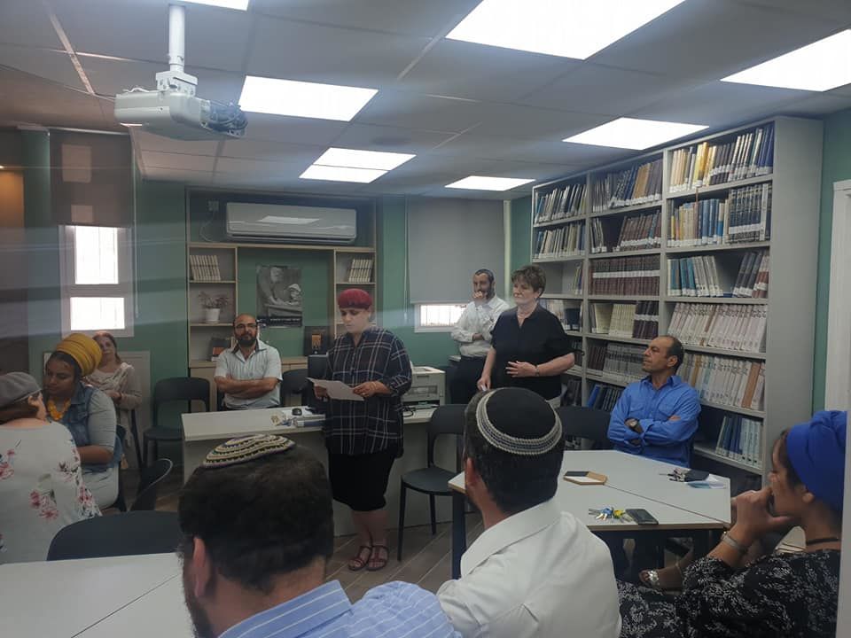 בטקס החניכה הרב רפי מימון, מנהל קריית החינוך התכבד בקביעת מזוזה ולאחר מכן נשאו דברים וברכו שולמית היועצת, מרים הספרנית ואליחי מנהל החט"ב.