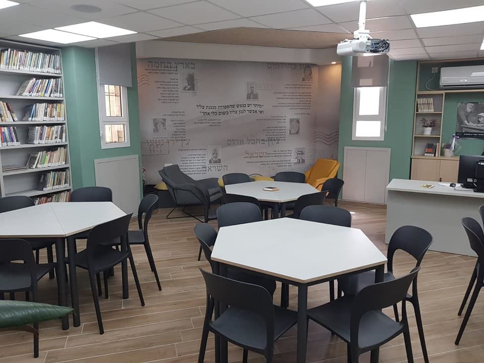הספרייה החדשה אותה מובילה הספרנית מרים שחר, שופצה והפכה למרכז למידה עם עמדות מחשב, ספות למנוחה ורגיעה ופינות קריאה.