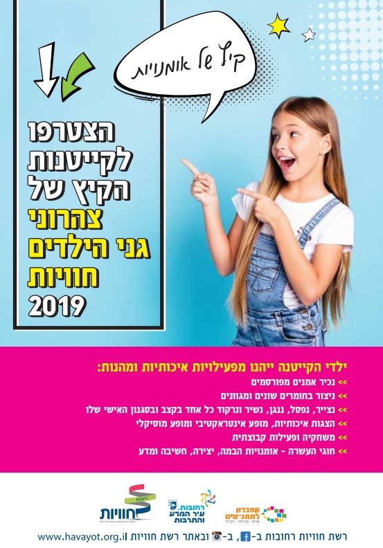 ההרשמה לקייטנות תיערך עד יום ראשון, יג' בסיוון, 16.6.19, באמצעות אתר האינטרנט של רשת חוויות.