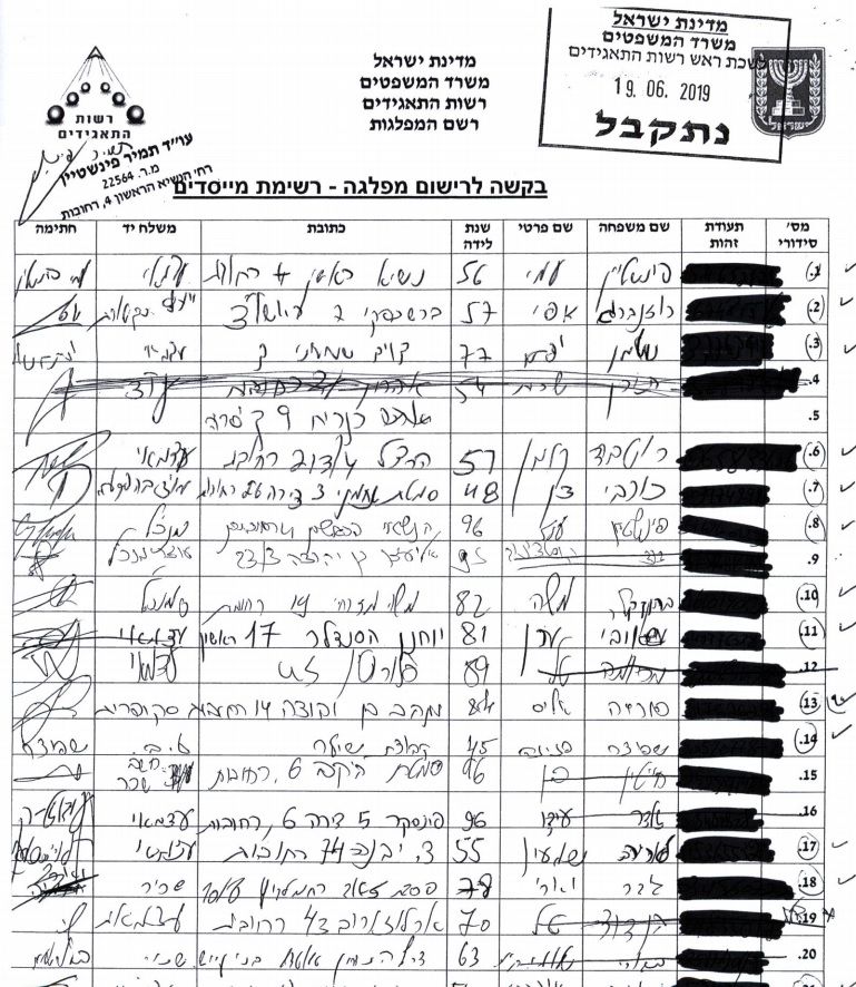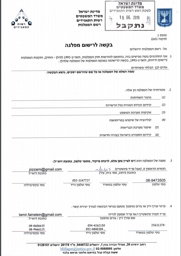 להלן טופס הקמת המפלגה