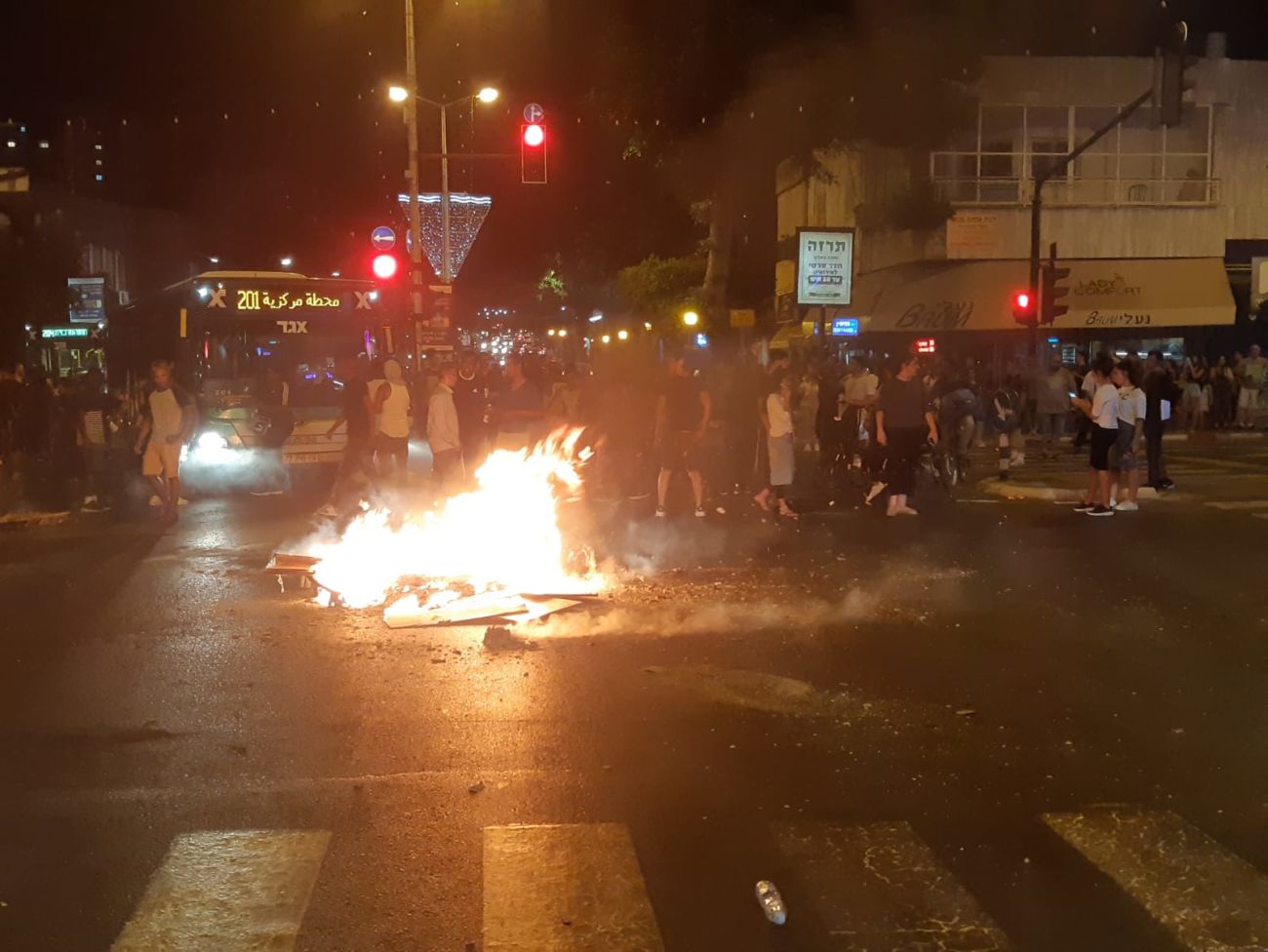 22:20 מוקד חדש של הפגנות ברחובות ליד הקניון בנוסף לצומת אושיות, גשר גבירול וצומת בילו אשר החלו בשעה 17:00 ועדיין לא רואים את סופן