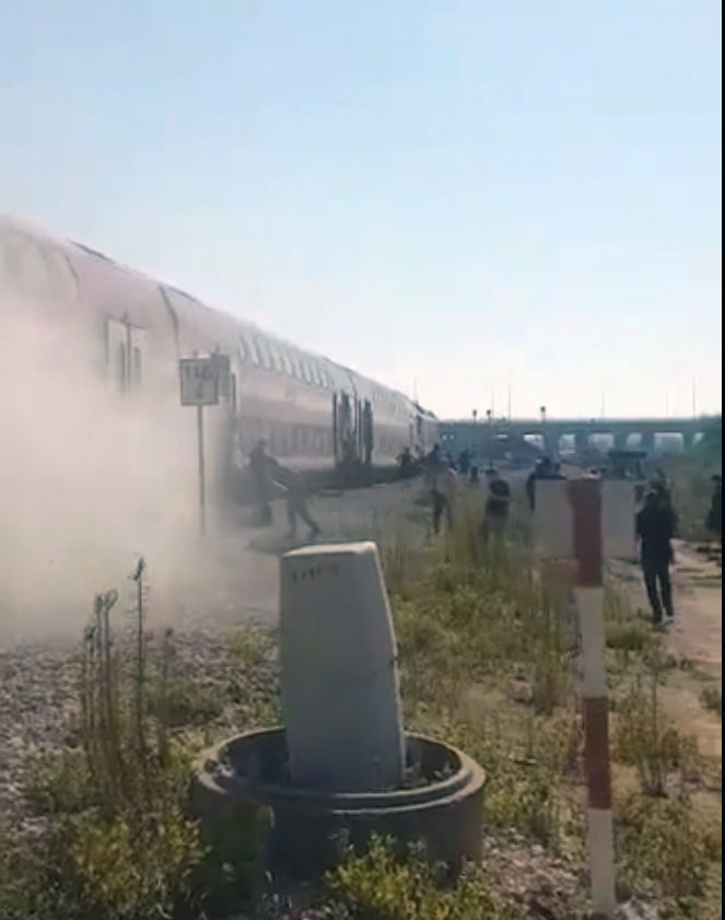 סרטון עשן יוצא מרכבת שיצאה מרחובות. הנוסעים פונו