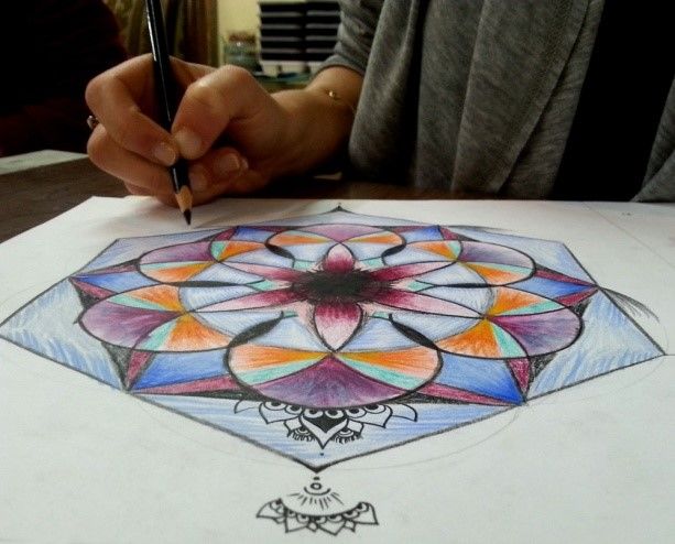 יצירת מנדלה בעזרת סרגל ומחוגה בעבודה יחד של הורה וילד בהנחיית מתי רבד, אין צורך ברקע קודם בציור.