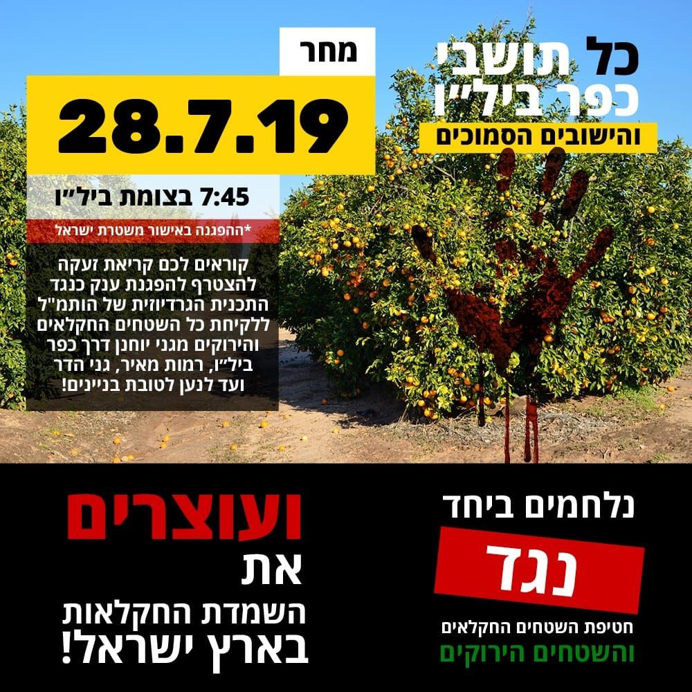 ההפגנה היא במחאה על הפגיעה בחקלאות לטובת בניית דירות