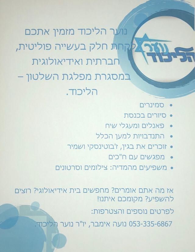 אורי קורא לבני הנוער המעוניינים להצטרף לפעילות ליצור קשר עם יו"ר מועצת הנוער הארצי של הליכוד