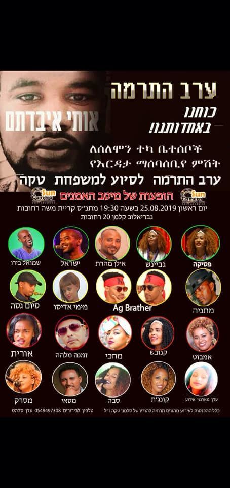 ביום ראשון 25.8 במתנ"ס קריית משה ברחובות יתקיים ערב התרמה מיוחד למשפחת סלומון טקה ז"ל, בהשתתפות מיטב אמני הקהילה האתיופית: שמואל בירו, אורית, סבה, אמבוט, מסרק ועוד