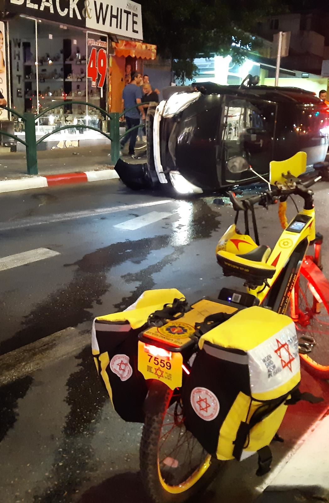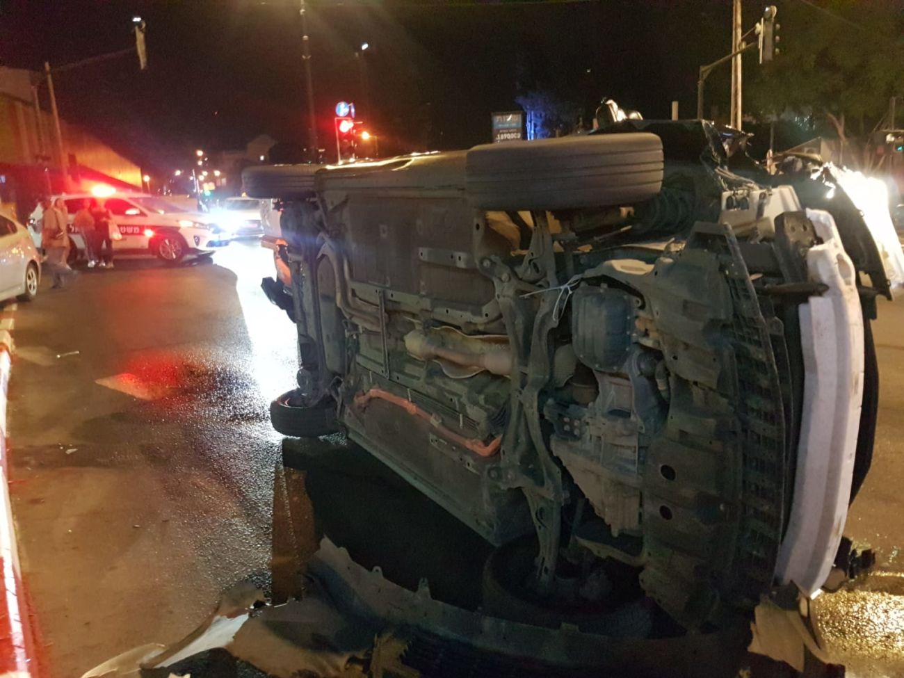 רכב התהפך במרכז רחובות, מצורף סרטון
