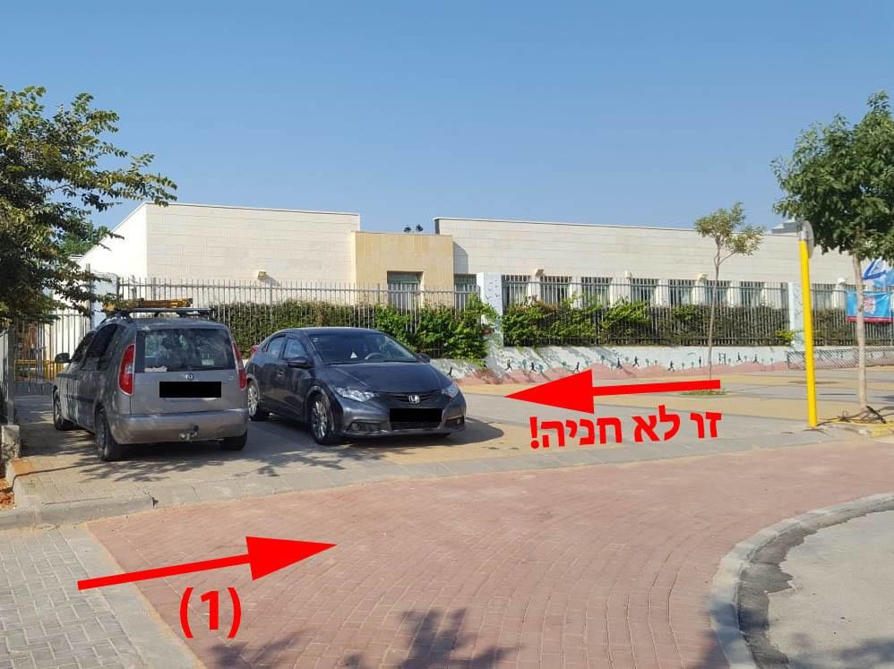 הכניסה למפרץ החנייה הינה חד סטרית ומוצב תמרור אין כניסה בצד הקרוב למתנ"ס