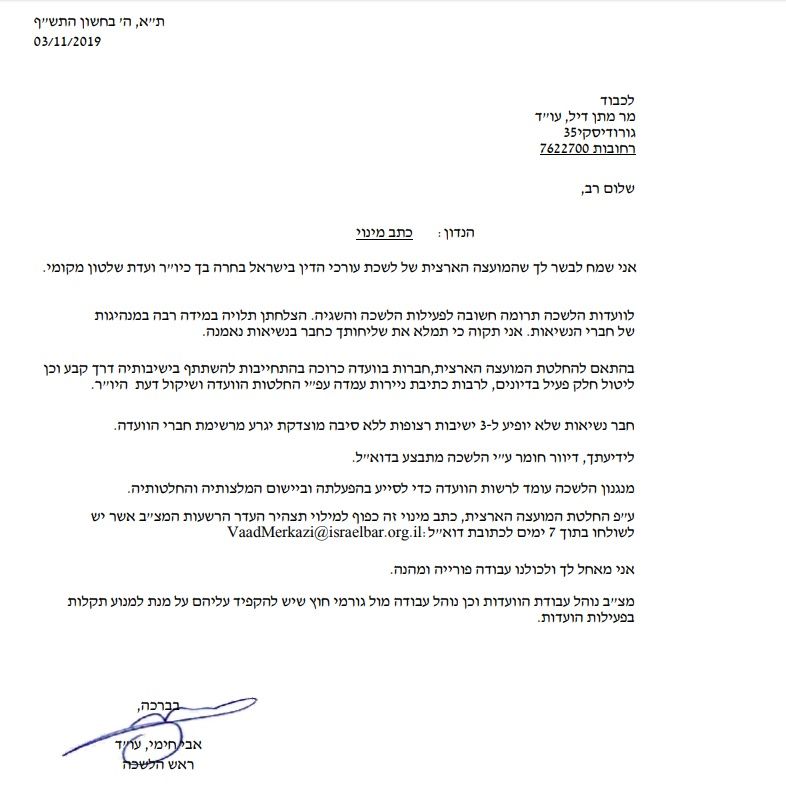 יו"ר האופוזיציה וחבר מועצת העיר רחובות עו"ד מתן דיל התבשר היום ראשון 3/11 על ידי יו"ר לשכת עורכי הדין עו"ד אבי חימי כי מונה ל – 2 תפקידים בלשכת עורכי הדין.