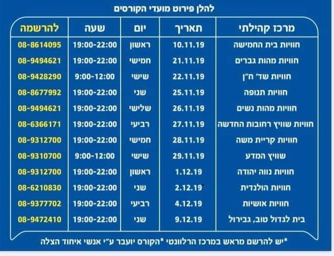 להלן רשימת המרכזים בהם יתקיימו הקורסים: