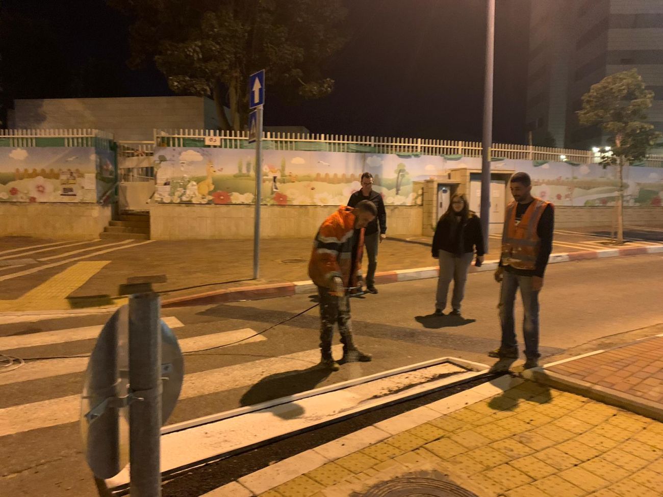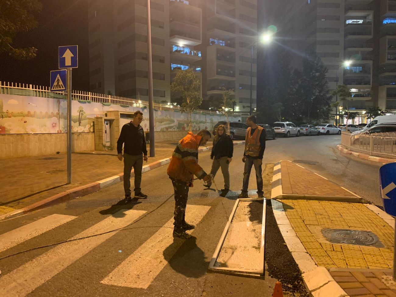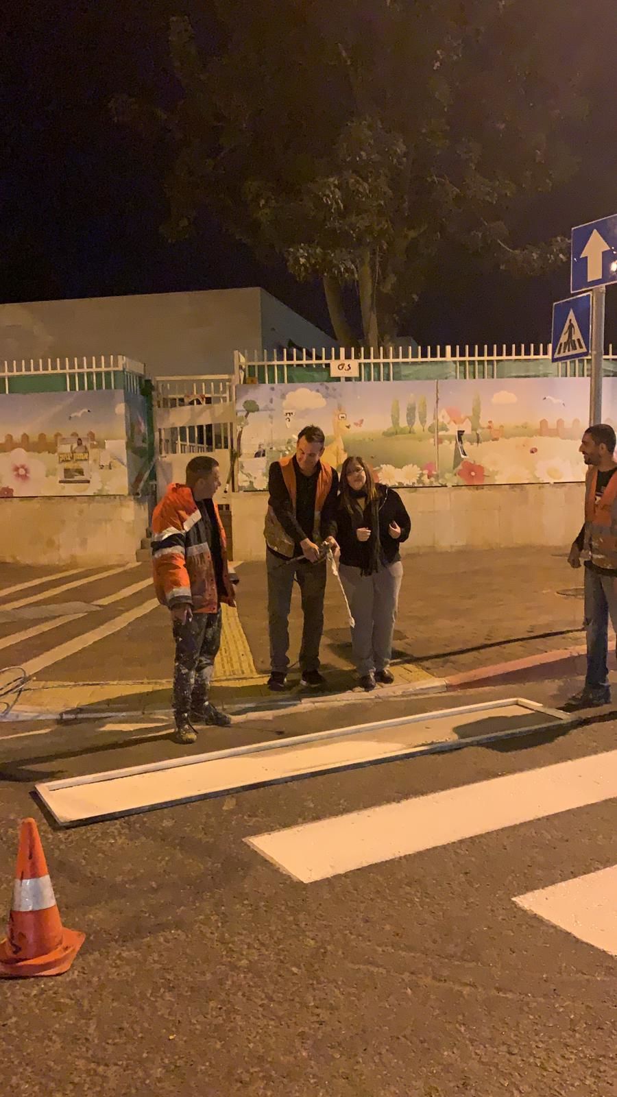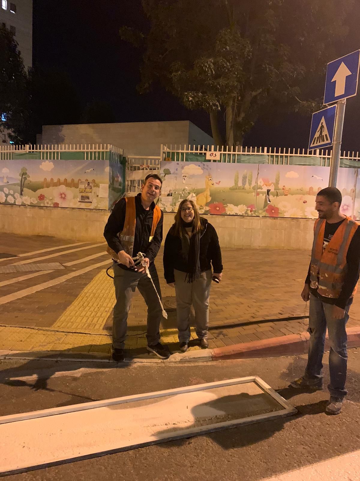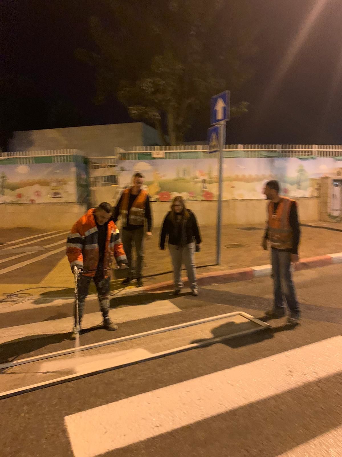 שמים את המחלקות בצד! לאור פניית קארין ברגינסקי לאבי קינד נצבעו מעברי החצייה בשכונת רחובות החדשה; השניים הפשילו שרוולים והשתתפו בעבודת הצביעה- מצ"ב סרטון