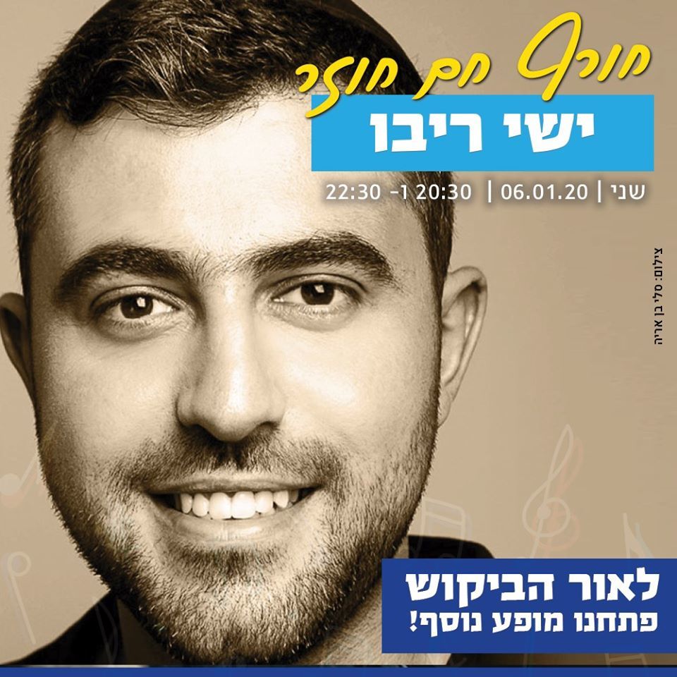 שתי הופעות בערב אחד! לאור הביקוש הרב יופיע הזמר ישי ריבו בשתי הופעות בהיכל התרבות רחובות ביום שני 6.1.20