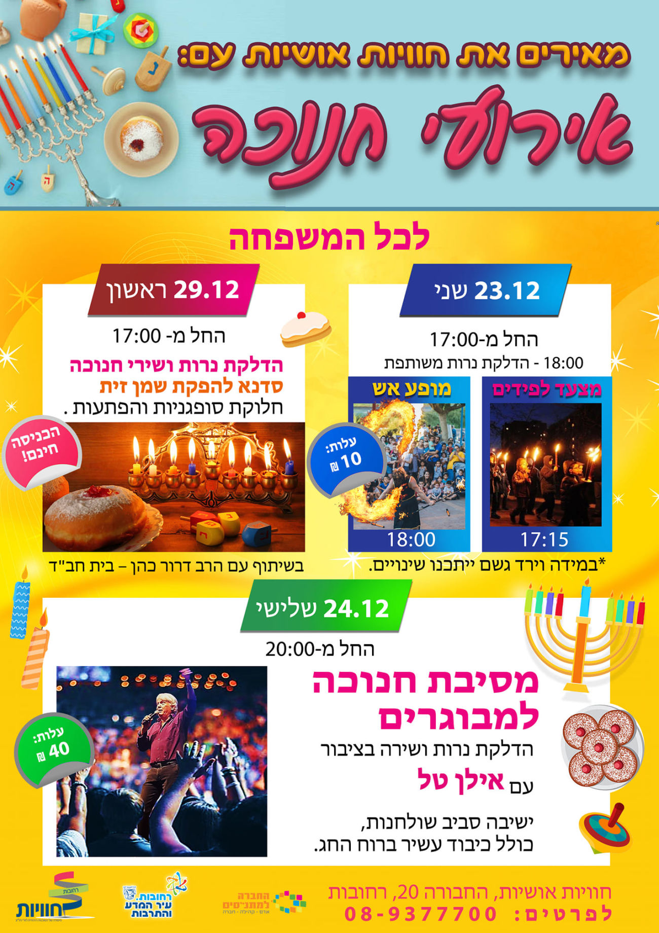 חג חנוכה בפתח ורשת חוויות הכינה לתושבי רחובות שלל אירועים ומסיבות חנוכה חגיגיות לכבוד החג.