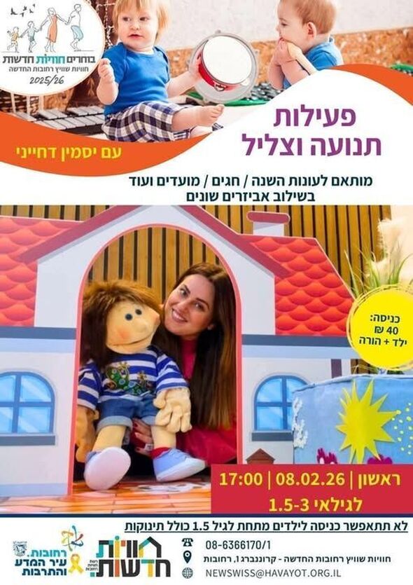 האירוע מיועד לפעוטות בגילאי 1.5 עד 3 ויתקיים ביום ראשון, ה-8.2.26, בשעה 17:00.