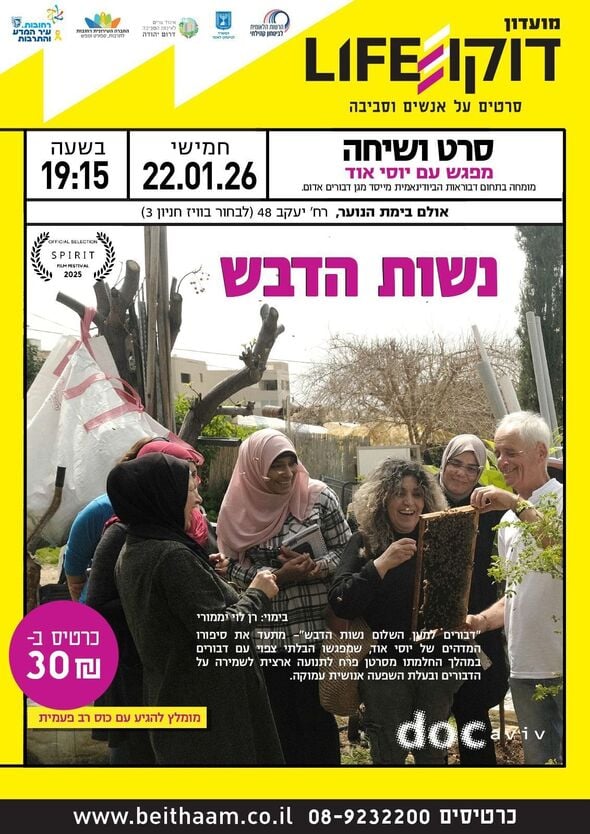 הקרנת הסרט התיעודי "נשות הדבש" ומפגש עם המומחה, יוסי אוד יתקיימו במועדון דוקו לייף בבימת הנוער רחובות ב-22 בינואר
