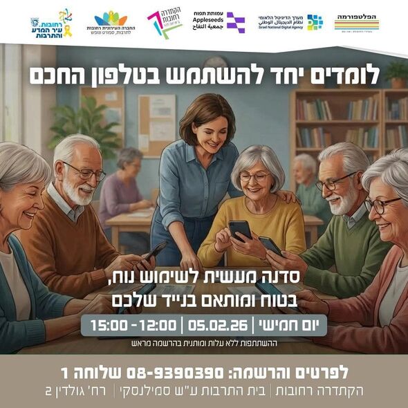 בבית התרבות ע"ש סמילנסקי תתקיים סדנה חווייתית ומעשית המיועדת לקהל הרחב, במטרה להקנות כלים לשימוש חכם, נוח ומתקדם בטלפון הנייד. הסדנה מיועדת למי שמעוניין לשפר את ההרגלים הדיגיטליים שלו, לצמצם הסחות דעת ולהפיק תועלת רבה יותר מהמכשיר בפחות זמן.