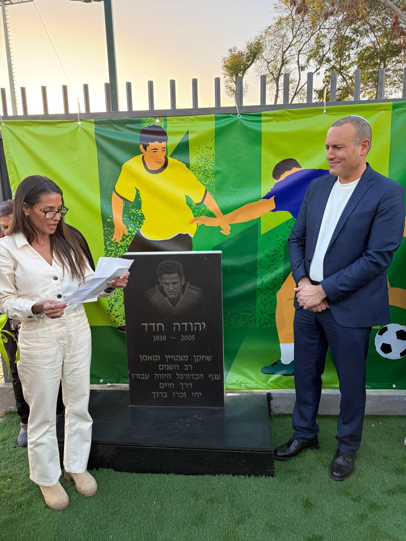 במהלך טקס חנוכת המגרשים הוסר הלוט מגל-עד לזכרו של יהודה חדד ז״ל, תושב רחובות ואחת מדמויות המפתח בקידום הספורט והעשייה החברתית בעיר. הגל-עד הוצב במגרש החדש, כהוקרה לפועלו רב השנים ולתרומתו המשמעותית לקהילה. הטקס כלל משחק ראווה חגיגי בין נבחרות הכדורגל של עיריית רחובות והחברה העירונית, כאשר ראש העיר בעט את בעיטת הפתיחה וסימן רשמית את פתיחת המגרשים לשימוש הציבור.