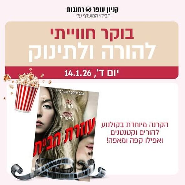 ביום רביעי, ה-14 בינואר, בשעה 9:30, תתקיים הקרנה של הסרט "עוזרת הבית". האירוע מאפשר להורים ליהנות מזמן איכות תרבותי יחד עם תינוקותיהם.