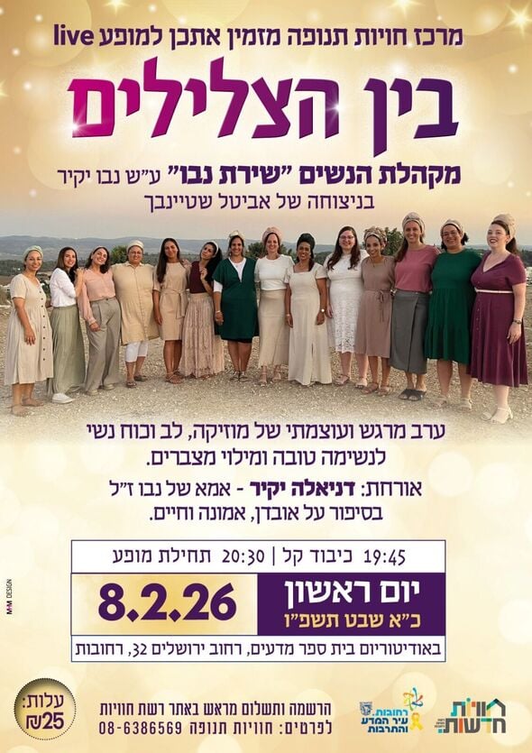 מקהלת "שירת נבו" יוצאת במופע בכורה חגיגי (Live) המיועד לנשים בלבד. האירוע יכלול ביצועים של שירים מרגשים והופעת רקדניות.