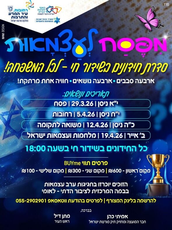 לפרטים נוספים ניתן ליצור קשר בטלפון: 073-802-4611.