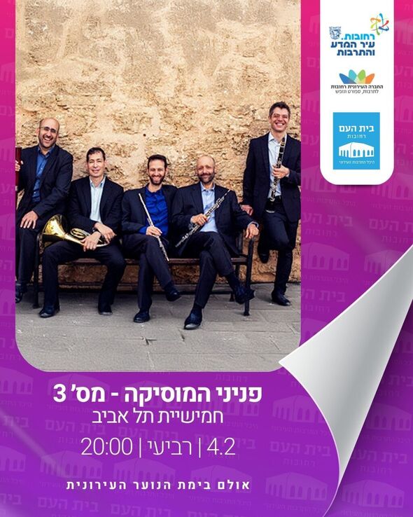 סדרת פניני המוסיקה ברחובות: חמישיית תל אביב תופיע בקונצרט קאמרי חגיגי ב-4.2.26 באולם בימת הנוער