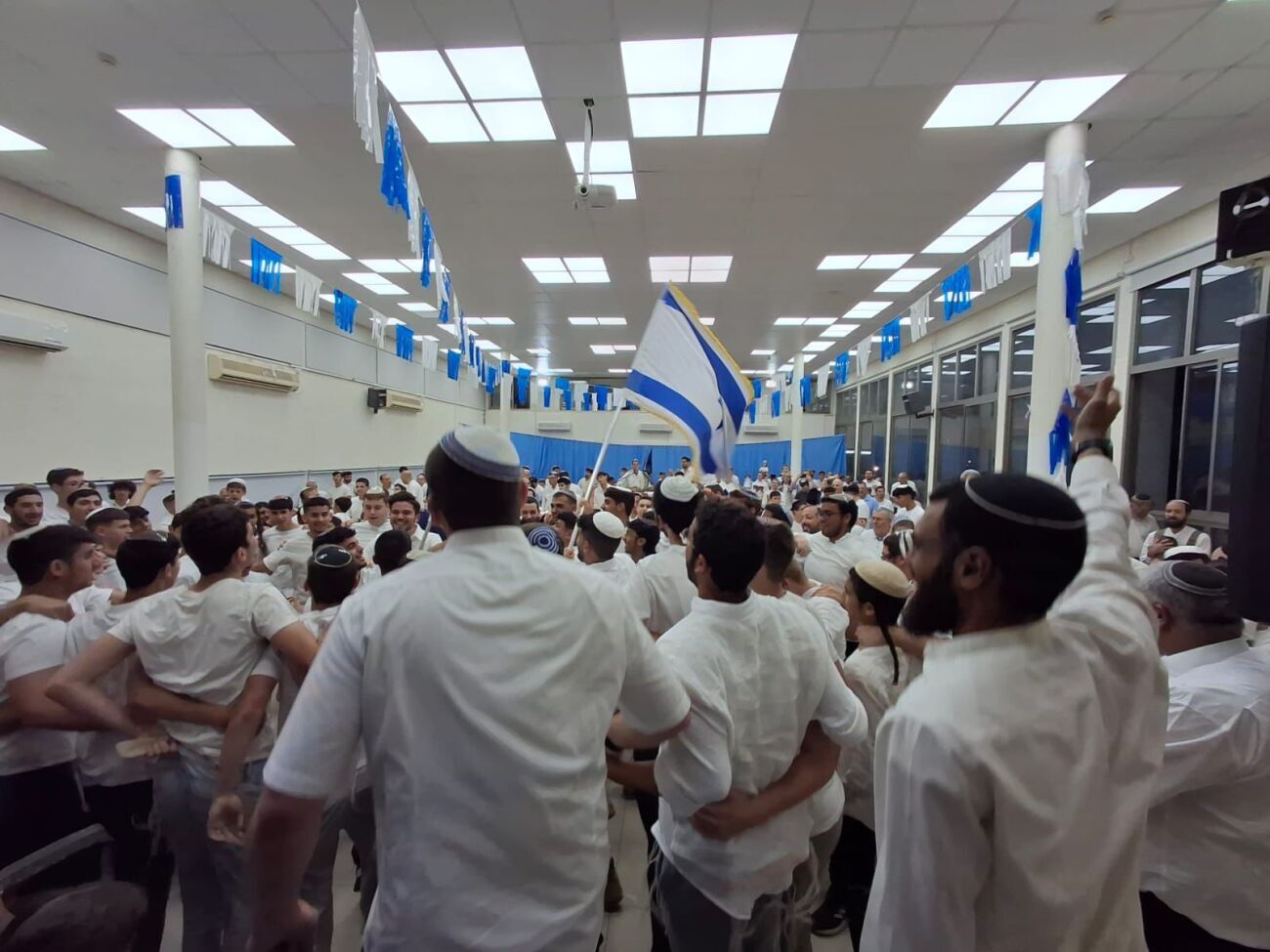 חגיגות כחול-לבן ברחובות: תלמידי בית הספר "מעלות משולם" ציינו את ראש חודש אייר בהרקדה חגיגית