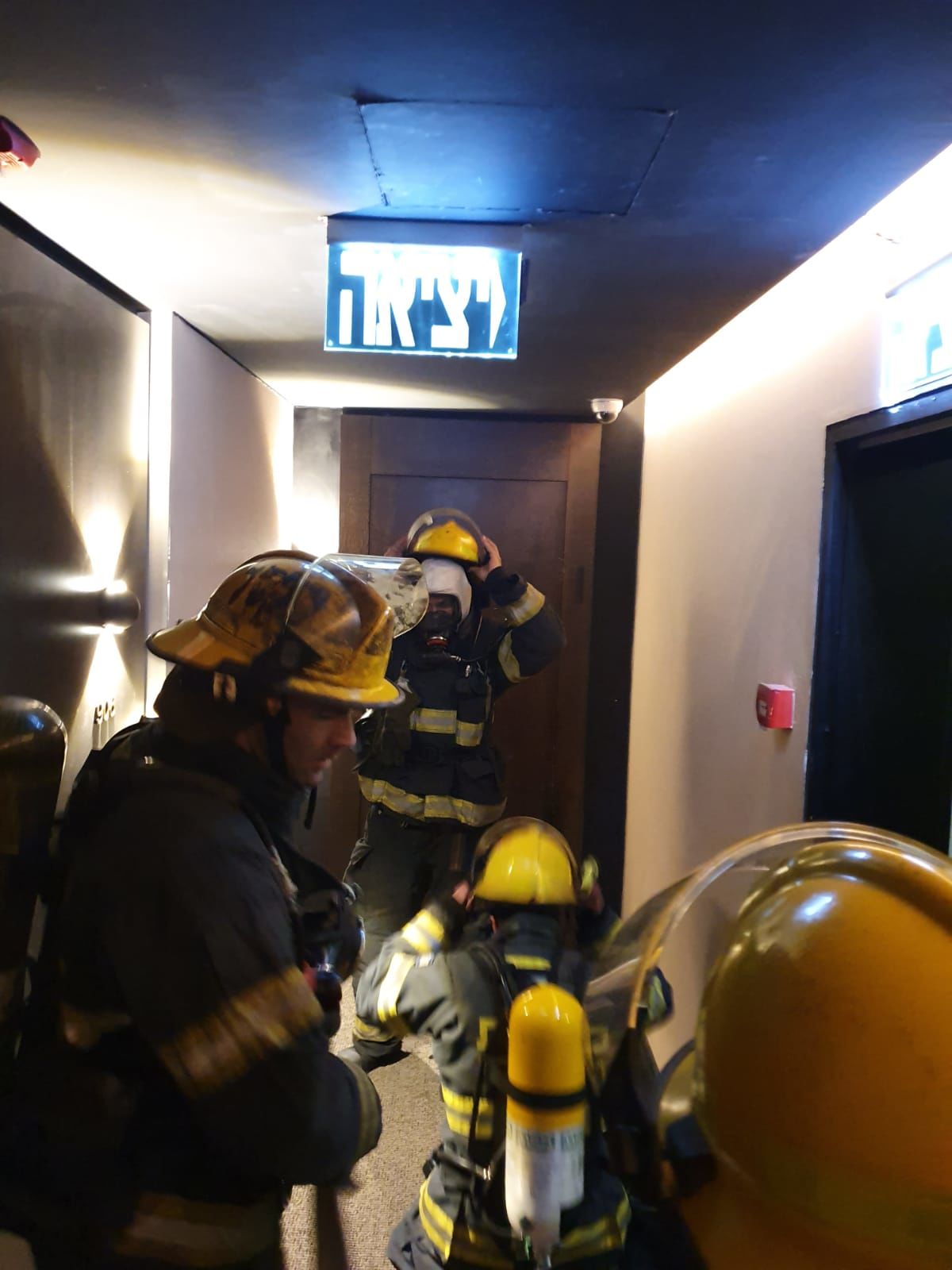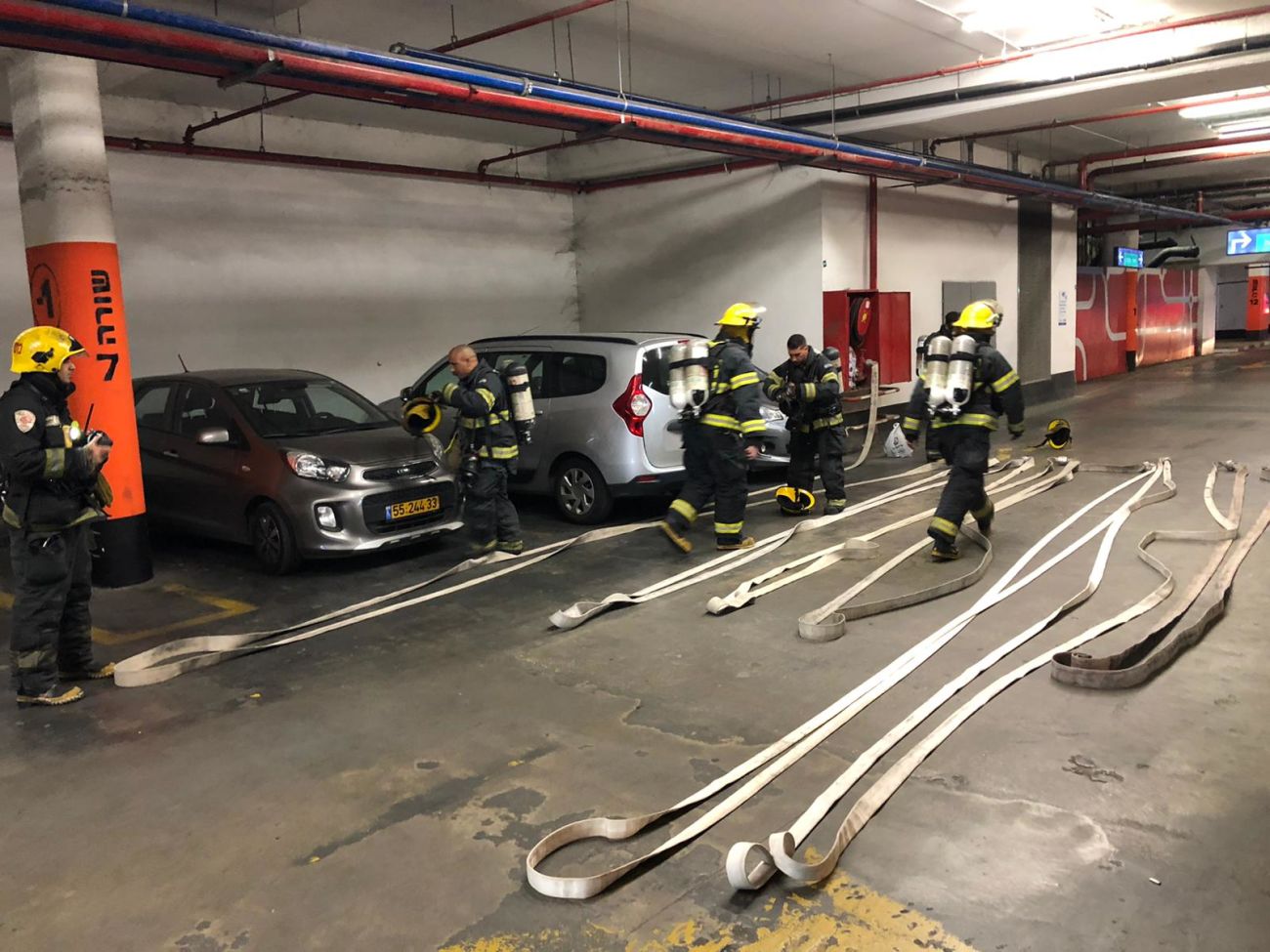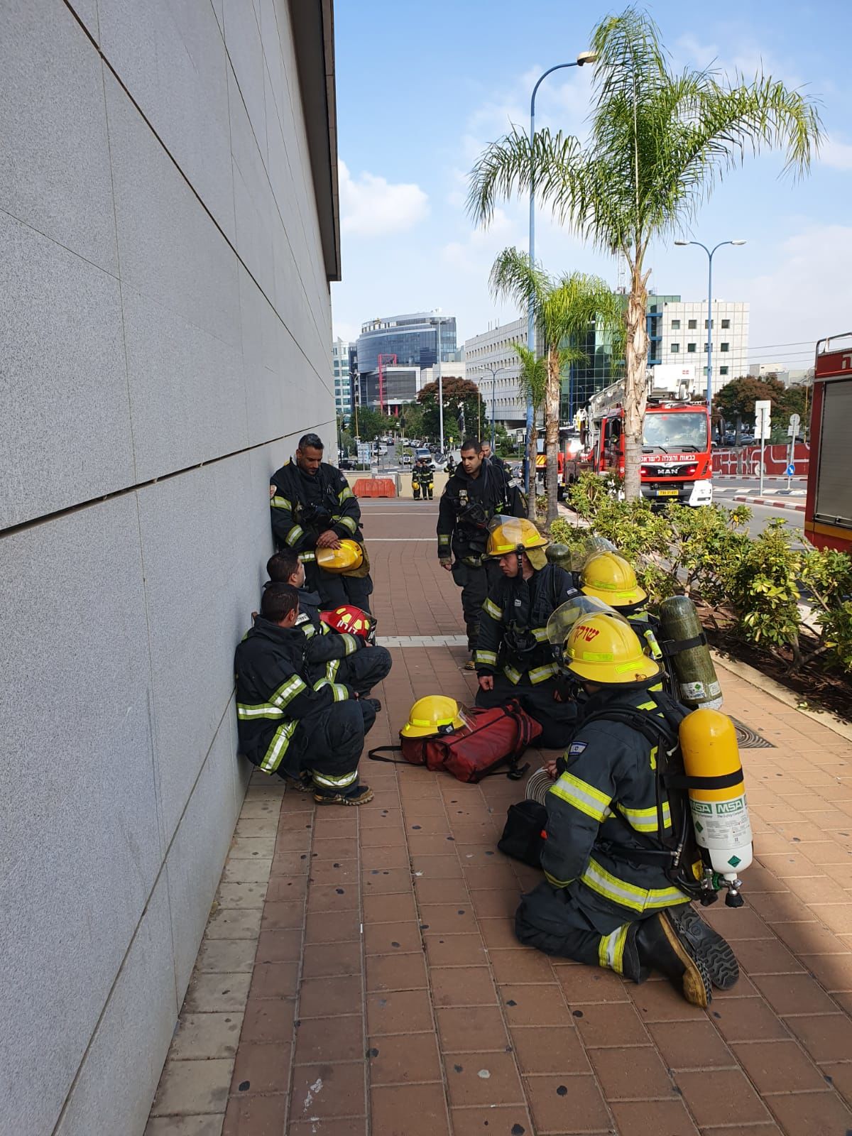 תמונות מתרגיל כיבוי האש שהתקיים במלון לאונרדו ברחובות הכולל: עבודות חילוץ תוך כדי תפעול מנוף, ועבודה בחניון התת קרקעי