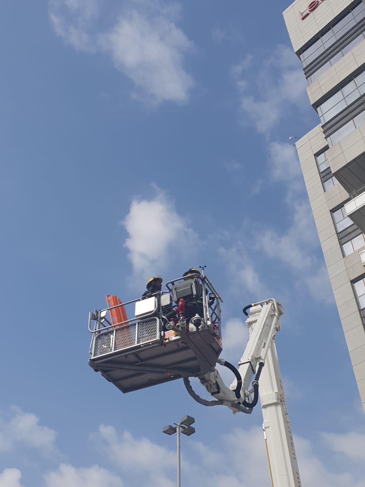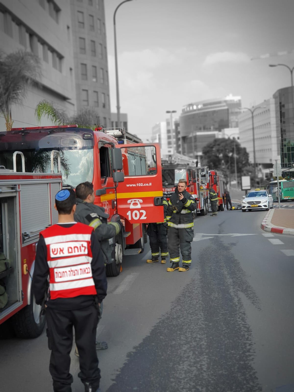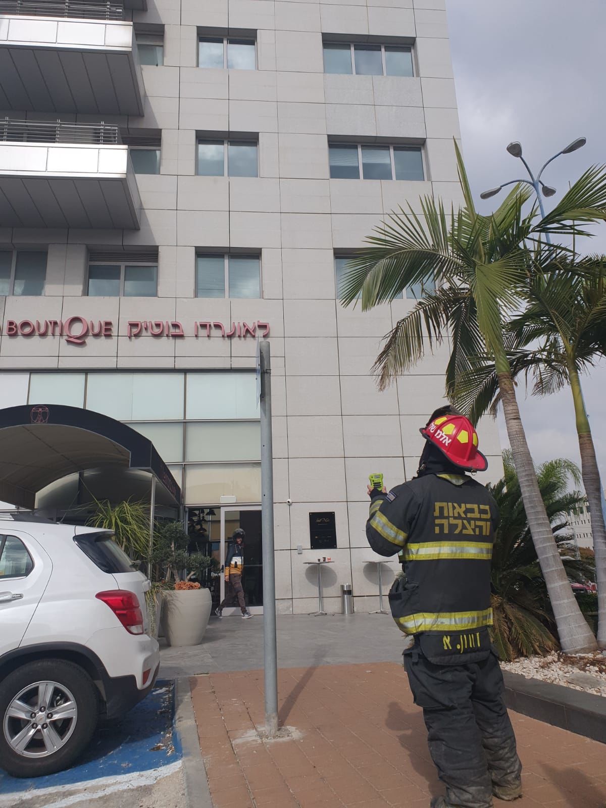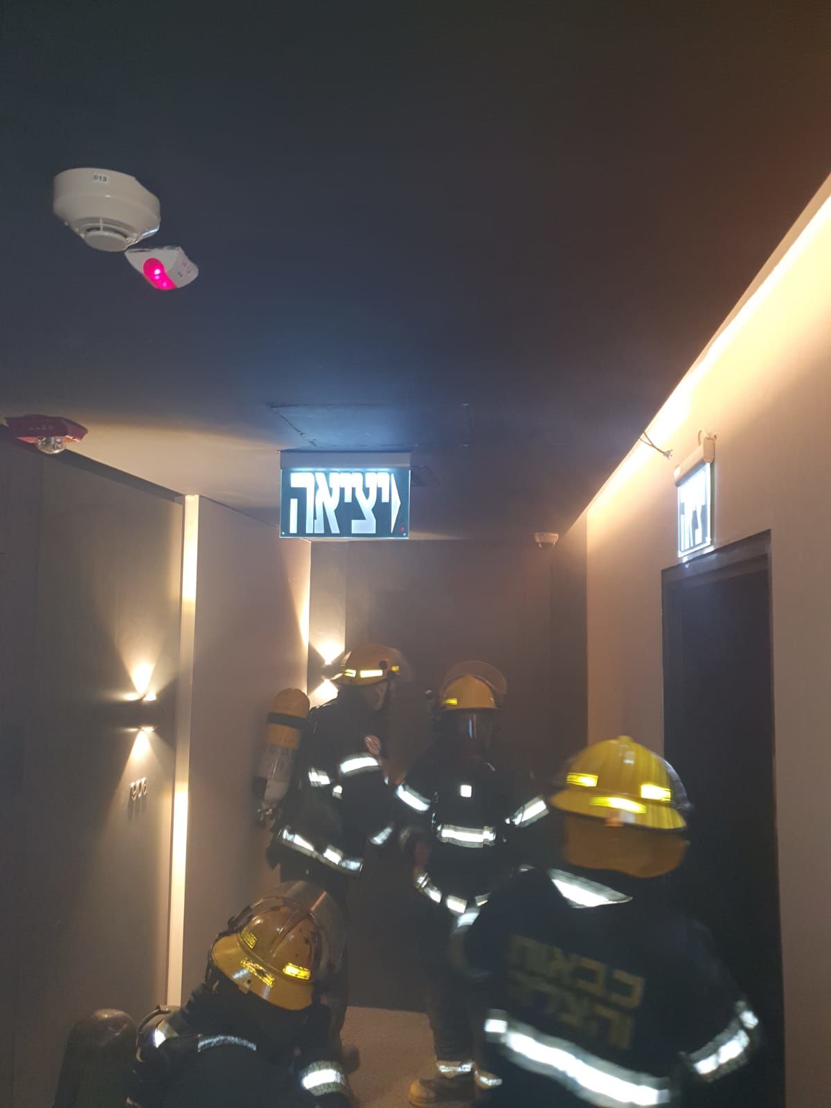 תמונות מתרגיל כיבוי האש שהתקיים במלון לאונרדו ברחובות הכולל: עבודות חילוץ תוך כדי תפעול מנוף, ועבודה בחניון התת קרקעי