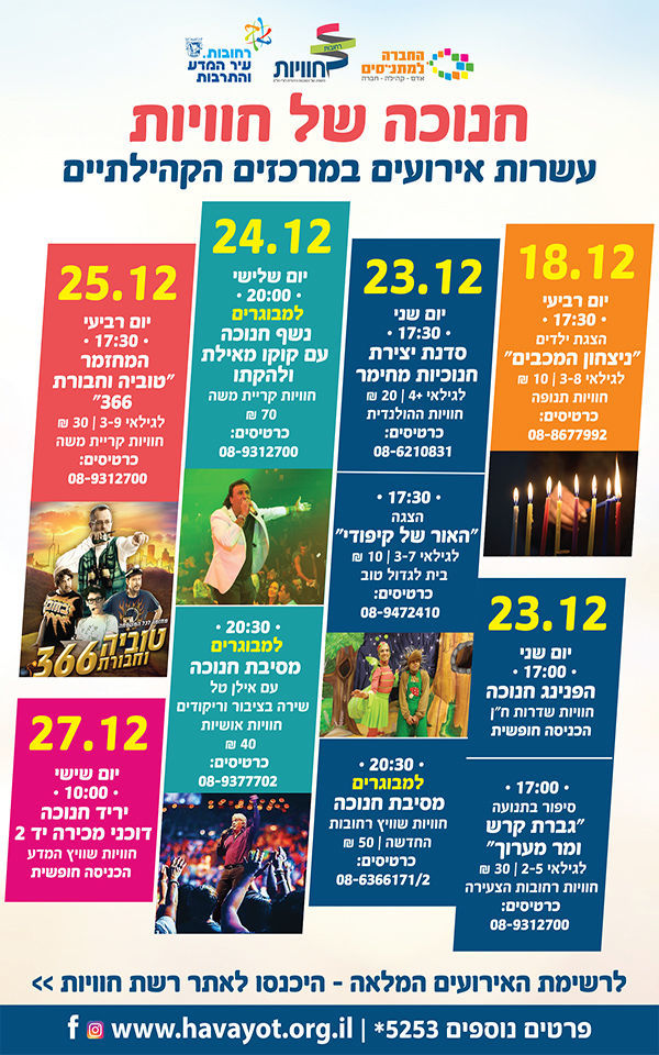 במהלך חג החנוכה יהנו תושבי רחובות מהופעות של קוקו מאילת, ערב שירה בציבור, יריד יד שנייה ועוד במרכזי רשת חוויות