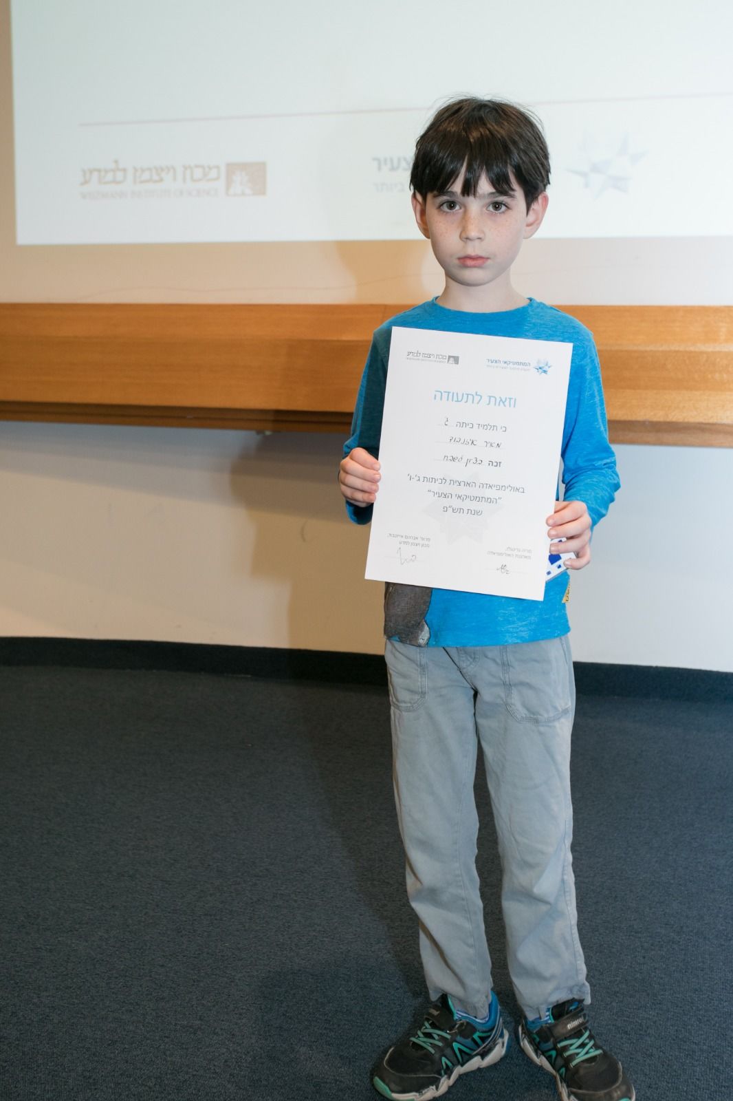 האולימפיאדה הארצית במתמטיקה לכיתות יסוד מאורגנת על ידי המועדון המתמטי הארצי "המתמטיקאי הצעיר" בשיתוף עם מכון ויצמן למדע. בסך הכל השתתפו בתחרות כ-1100 תלמידי כיתות א' – ו'. בסיום שלב הגמר התקיים ביום חמישי האחרון 16.1 טקס חלוקת התעודות לזוכים.