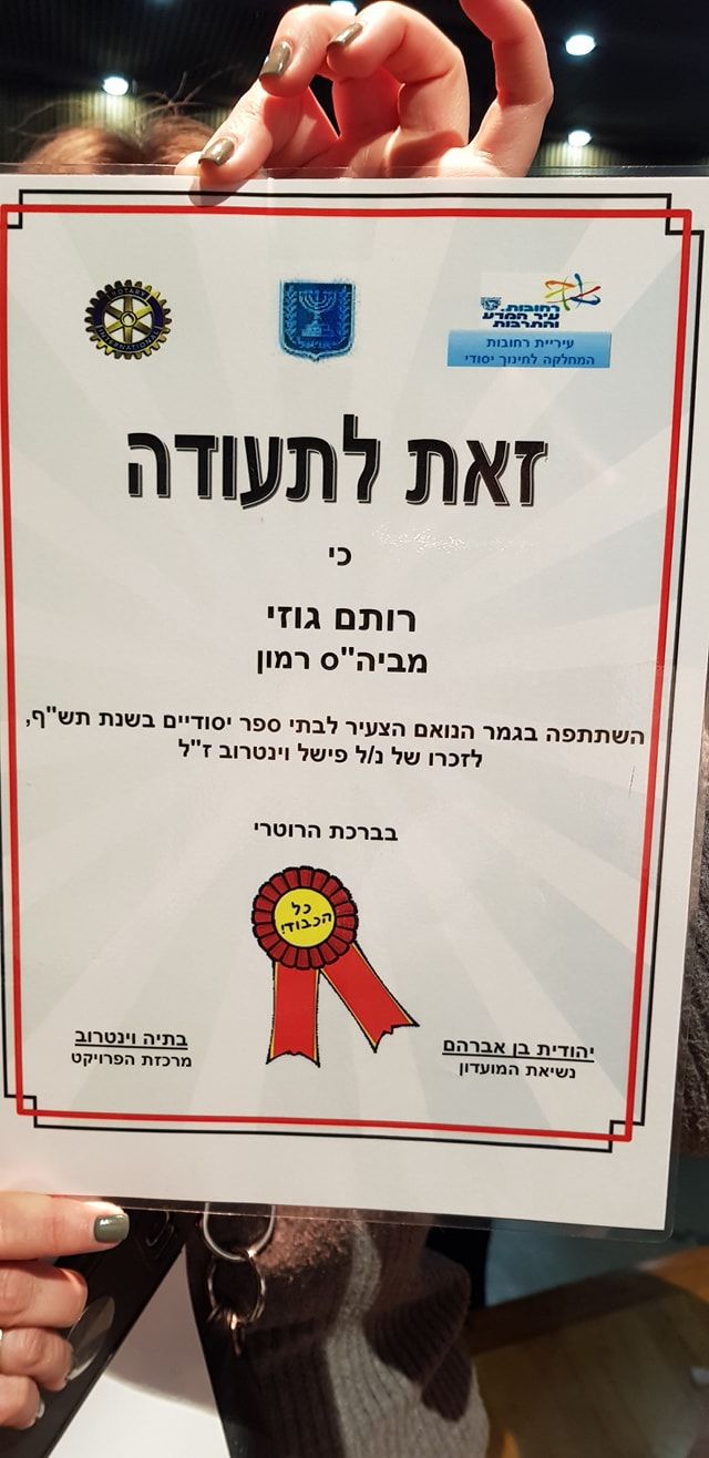 במקום הראשון זכתה ליה קופרשטיין מבי"ס בן צבי שנאמה על " עבודת צוות".