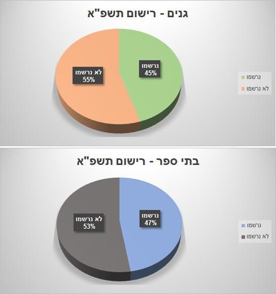 45% מילדי הגנים נרשמו, כ3300 ילדים.