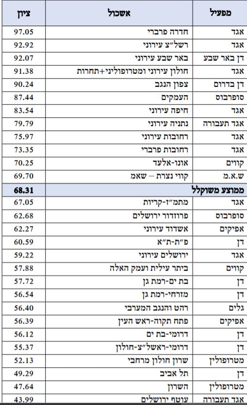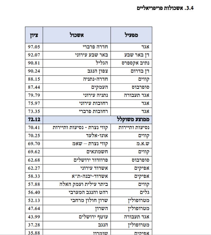 מדי חודש מפרסם משרד התחבורה את ציוני החברות על פי הנתונים המגיעים ממערכת הבקרה האלקטרונית של המשרד אשר בודקת את זמני ההגעה של האוטובוסים: הקדמה, איחורים ואי ביצוע של נסיעות.