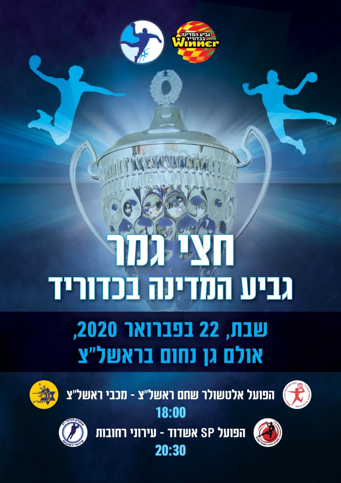 משחק חצי גמר גביע המדינה בכדוריד יתקיים במוצ"ש 22.2 בהיכל הספורט גן נחום בראשון לציון