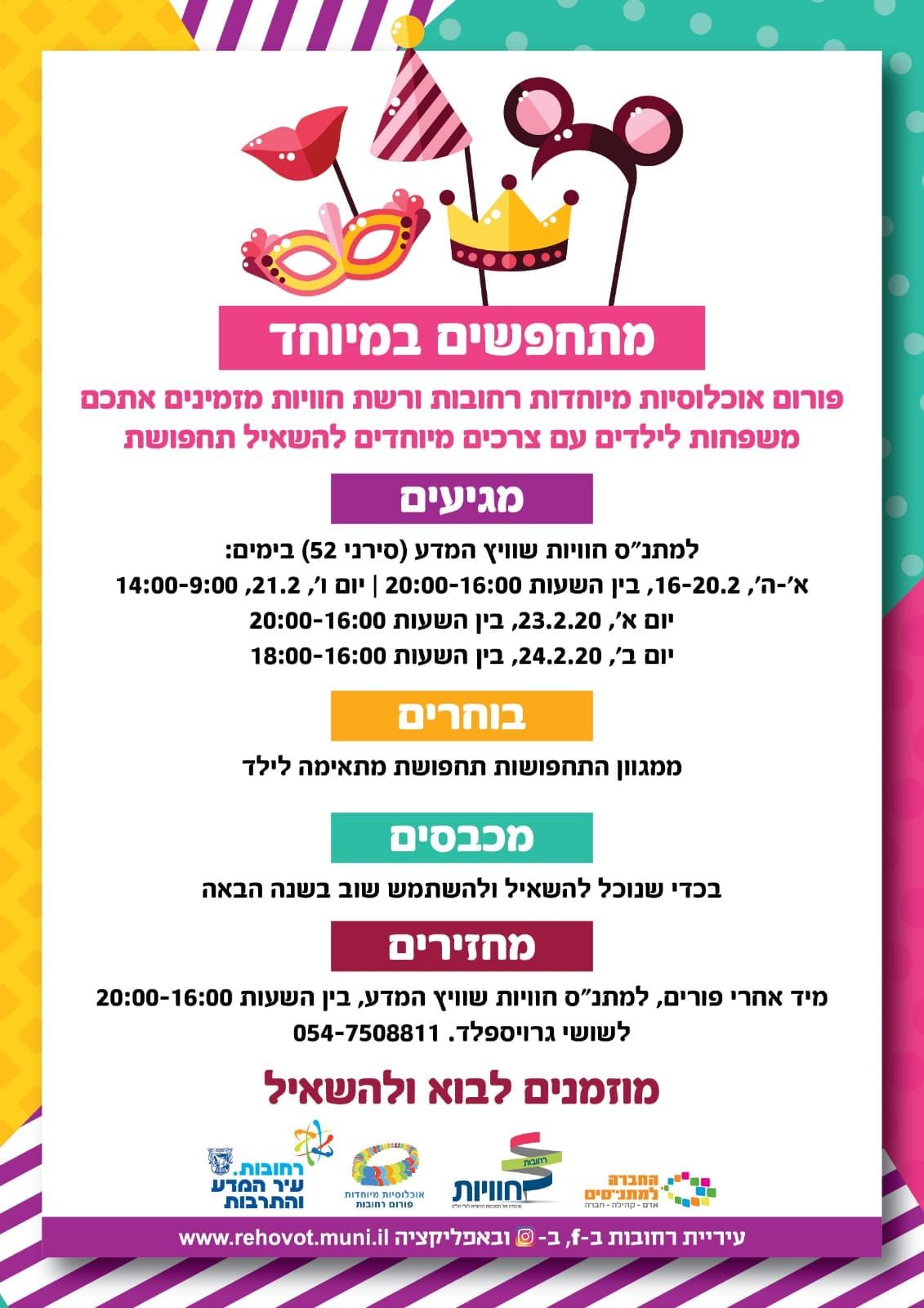 איסוף התחפושות יימשך עד יום שני 24.2.20 בחוויות שוויץ המדע