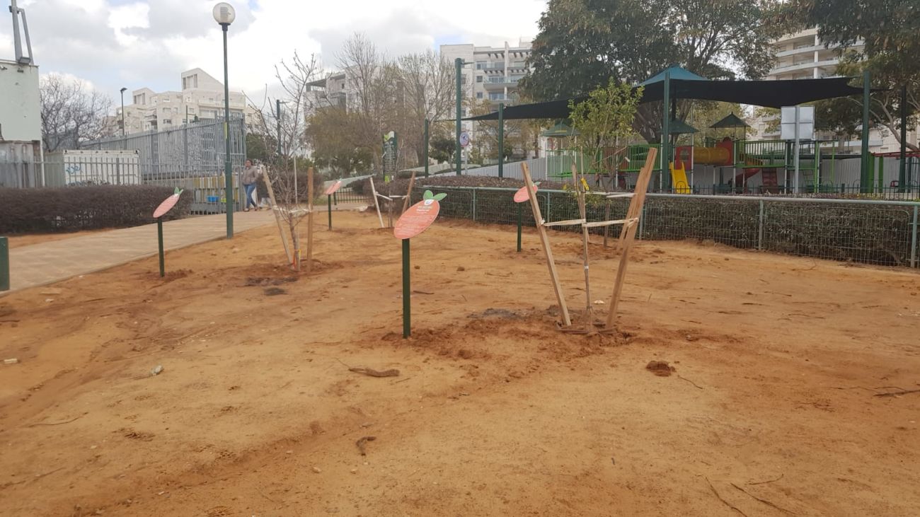 עובדי אגף גנים ועיצוב הסביבה שתלו השבוע עצים בגינה מיוחדת: חורשת פרי.