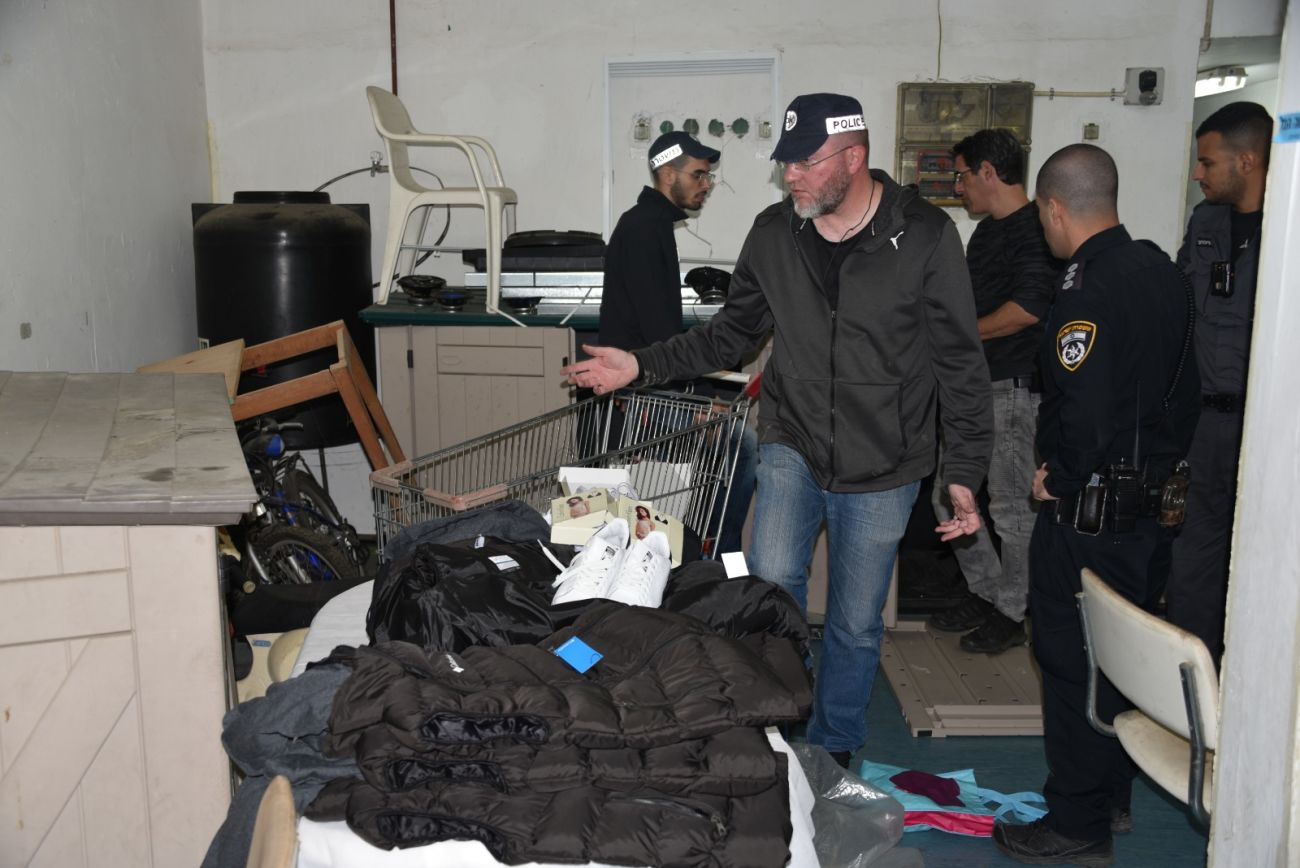 בנוסף בוצע חיפוש במקלט ציבורי בו אוחסנו על פי החשד בגדי מותגים מזויפים שיועדו למכירה לציבור, הסחורה הוחרמה ובעליה נקנס ועוכב לחקירה.