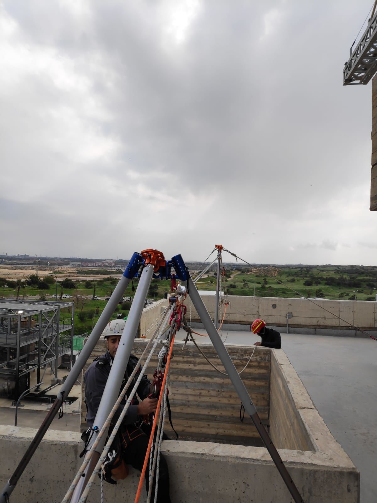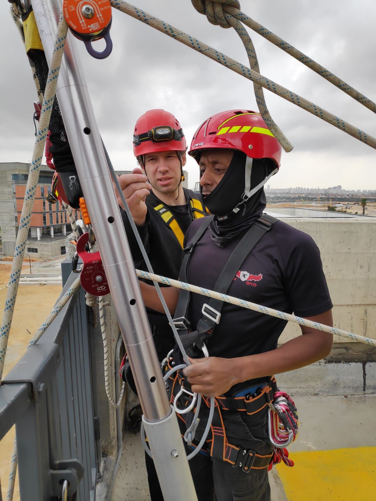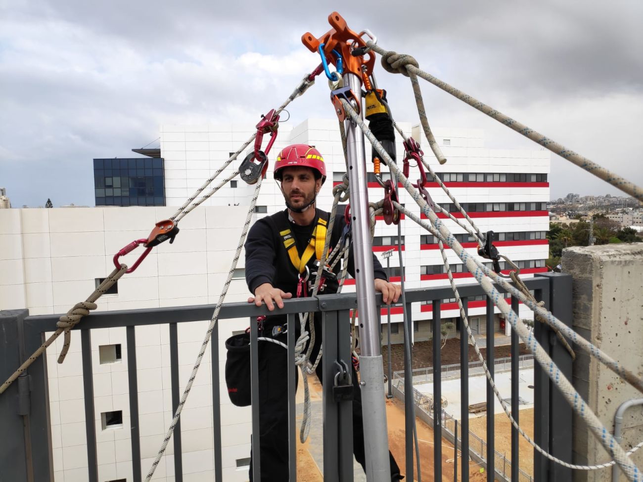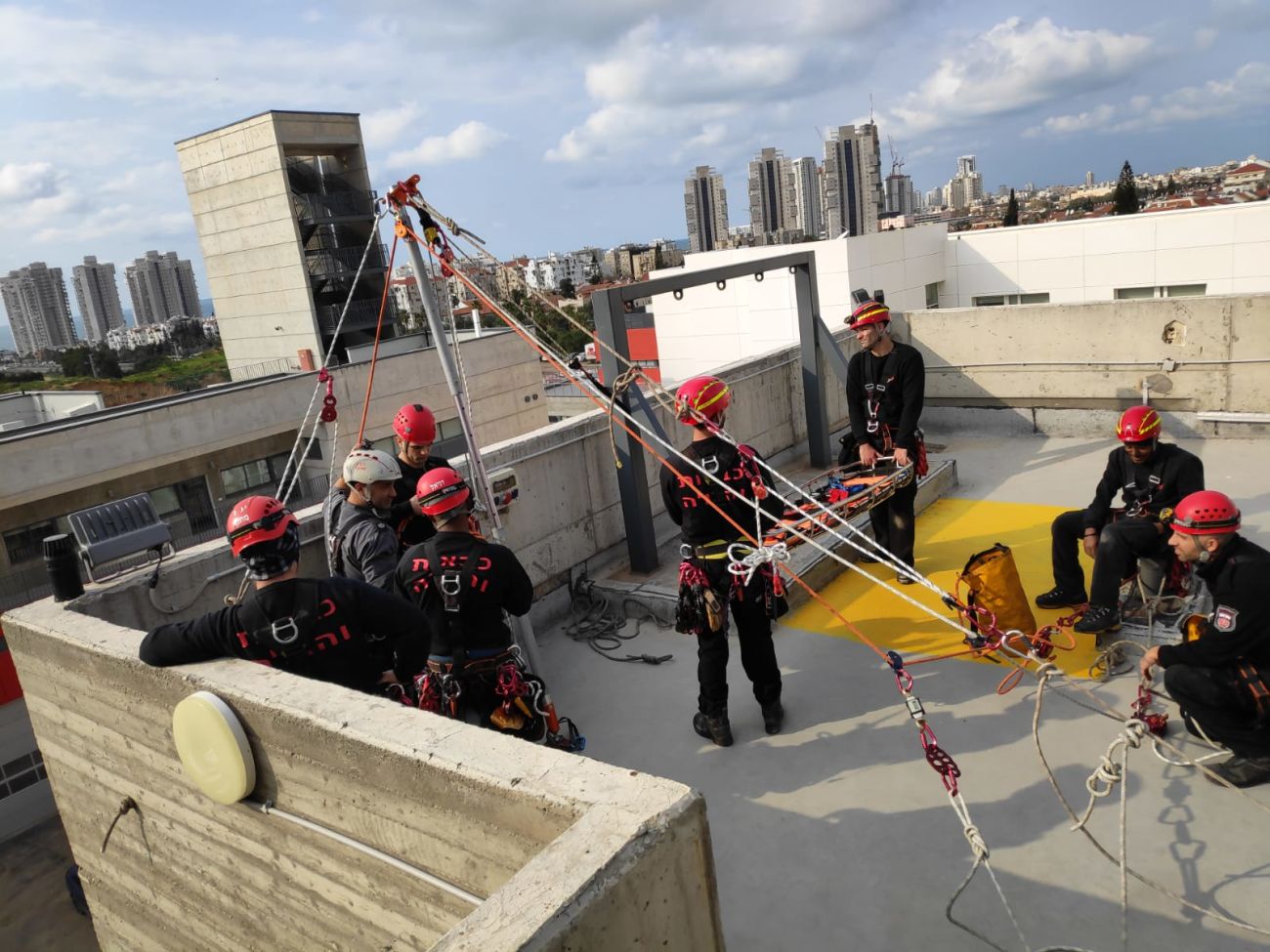 סרטון ותמונות של תרגול של כבאי רחובות בשימוש במערכות חילוץ מורכבות המשמשות לחילוץ מגובה