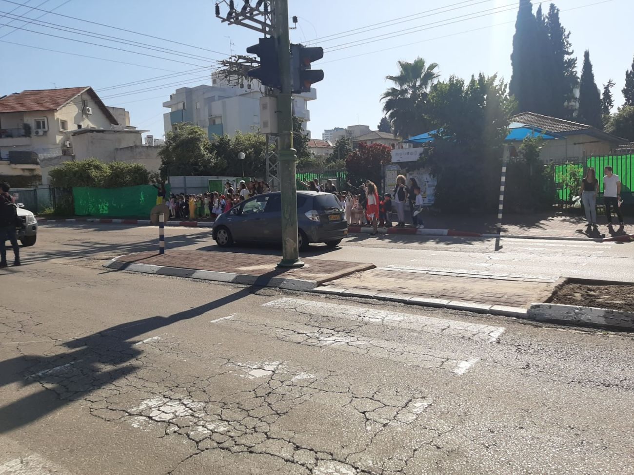 יום ראשון 8/3 שעה 09:15. לחצי תנועה כבדים נרשמים ברחוב הרצל – דרך יבנה לאור התהלוכה המסורתית בפורים של תלמידי שפרינצק.