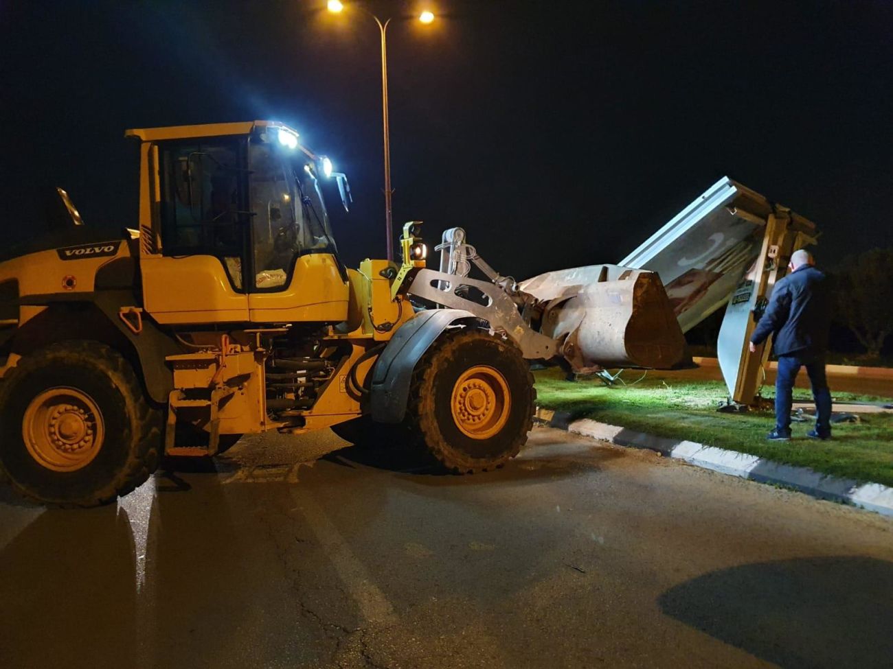 בדרך מנחם בגין נפל שלט חוצות וחסם חלק מהכביש, צוות אגף התנועה בשיתוף עם צוות אגף חזות העיר טפלו בהסרת המפגע באמצעות טרקטור.