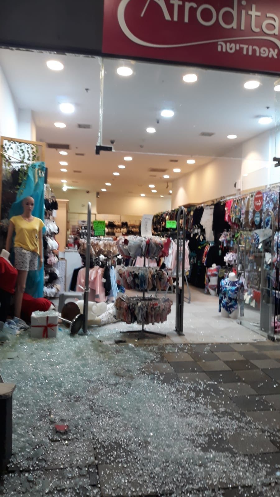 הרוח עקרה את ויטרינת חנות "אפרודיטה" בבילו סנטר וניפצה אותה לרסיסים.