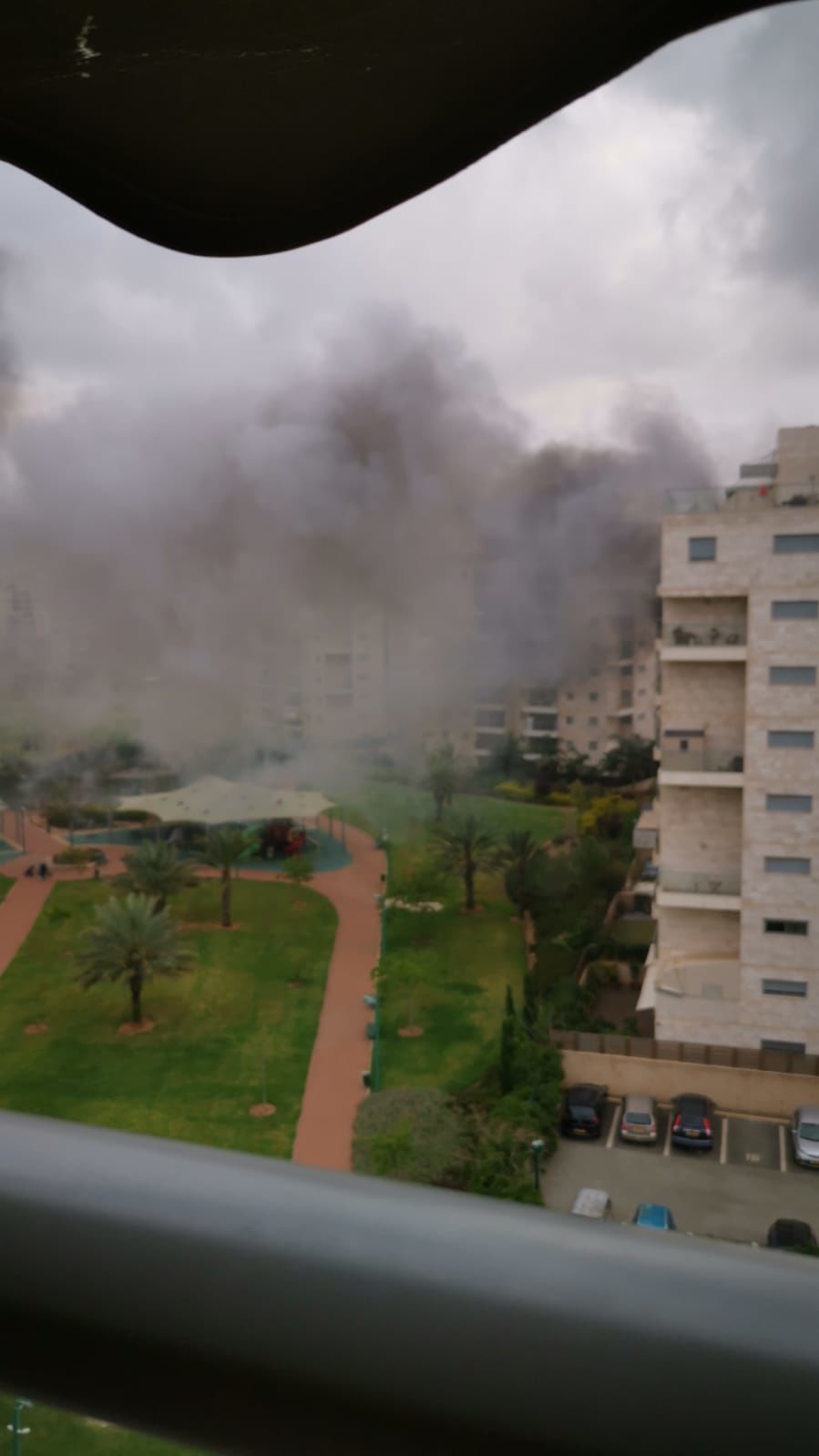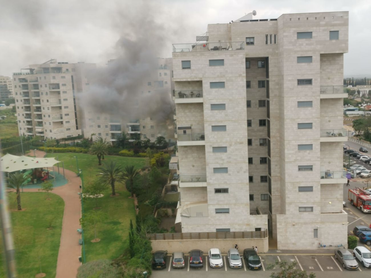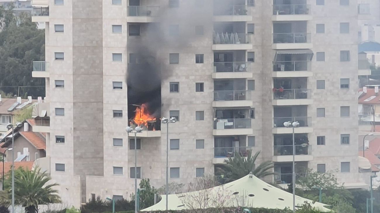 4 צוותים בפיקודו של מפקד המשמרת דורון אלמשלי פועלים בשריפה במרפסת של בניין גבוה ברחוב דרך ששת הימים ברחובות.