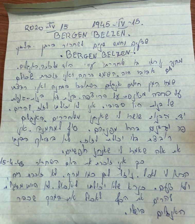 בשביל לילי דויטש בת ה 93 (אמו של עדי דויטש, לשעבר מנכ"ל רשת חוויות) , התאריך 15.4.45 הוא יום מיוחד בו נצלו חייה בזמן מלחמת העולם השנייה. ביום זה מצוין יום השחרור של מחנה הריכוז ברגן בלזן, על ידי הצבא הבריטי לאחר הסכם הפסקת אש בין הגרמנים לאנגליה. לאור משבר הקורונה התאריך לא צוין השנה באמצעי התקשורת ולכן לילי בקשה מבנה, עדי, לתת ביטוי לתאריך החשוב עבורה. בהיותה בת 18 שוחררה מהמחנה 75 שנים עברו מאז אותו יום .