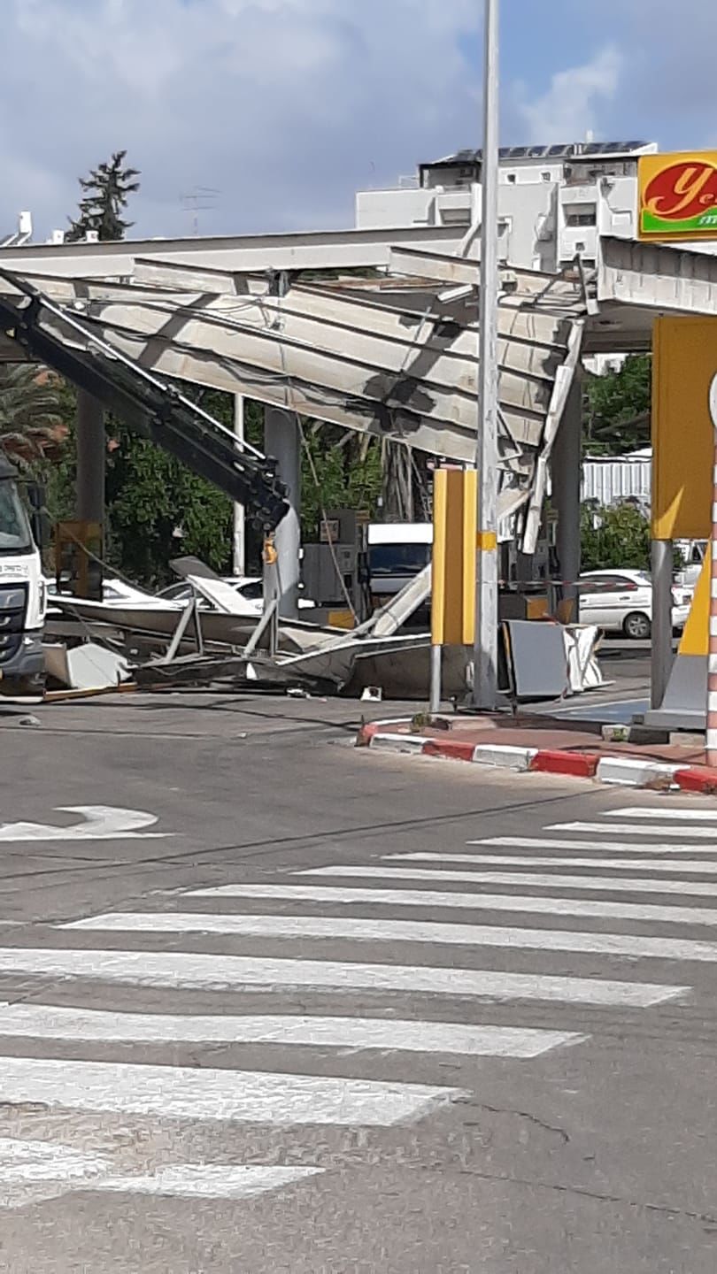 יום ראשון 24/5 גג תחנת הדלק קרס בתחנת פז שעריים קרס בגלל הרוחות העזות