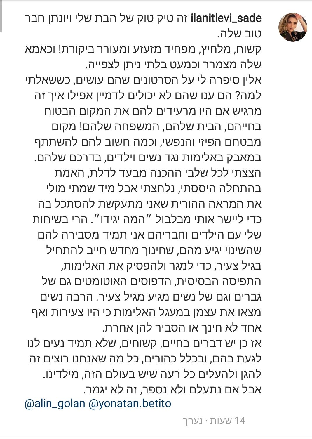בפוסט כתבה אילנית לוי :
